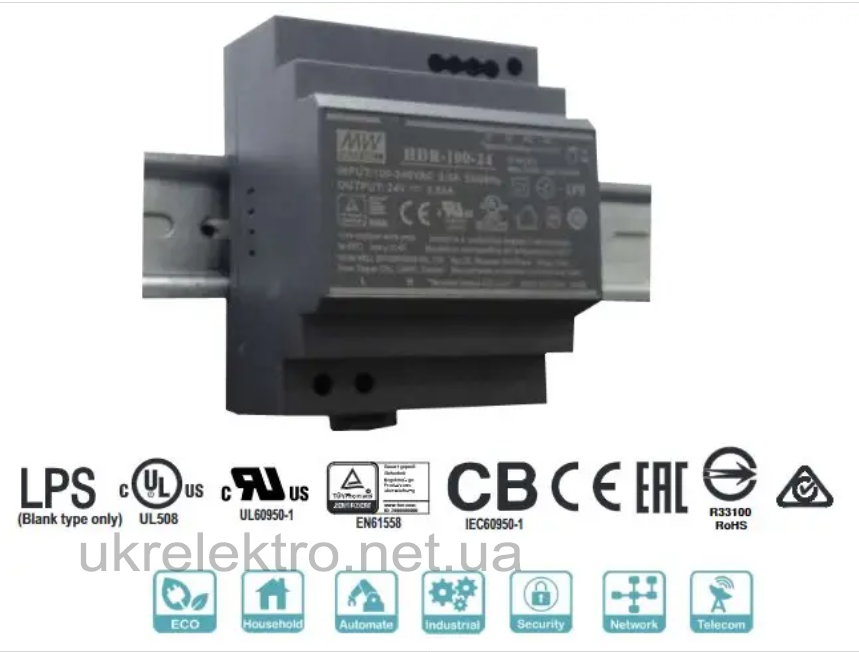 Блок питания Mean Well на DIN-рейку 100.8W DC24V (HDR-100-24N)
