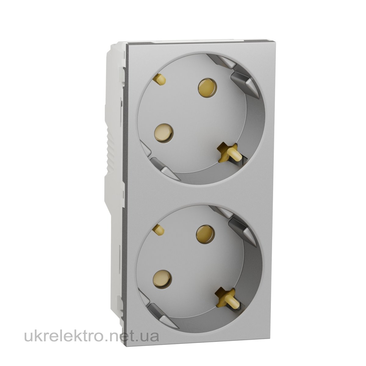 Двойная розетка 45 ° со шторками, с заземлением, алюминий