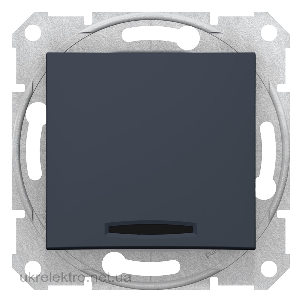 Кнопочный выключатель SEDNA С синей подсветкой ГРАФИТ