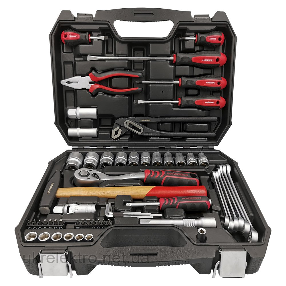 Професійний набір інструментів Haisser – універсальний набір для побутового та професійного застосування. Призначена для виконання широкого спектру ремонтних та складальних робіт. До складу цього набору входять 58 предметів. Укомплектований набір у пластиковий кейс