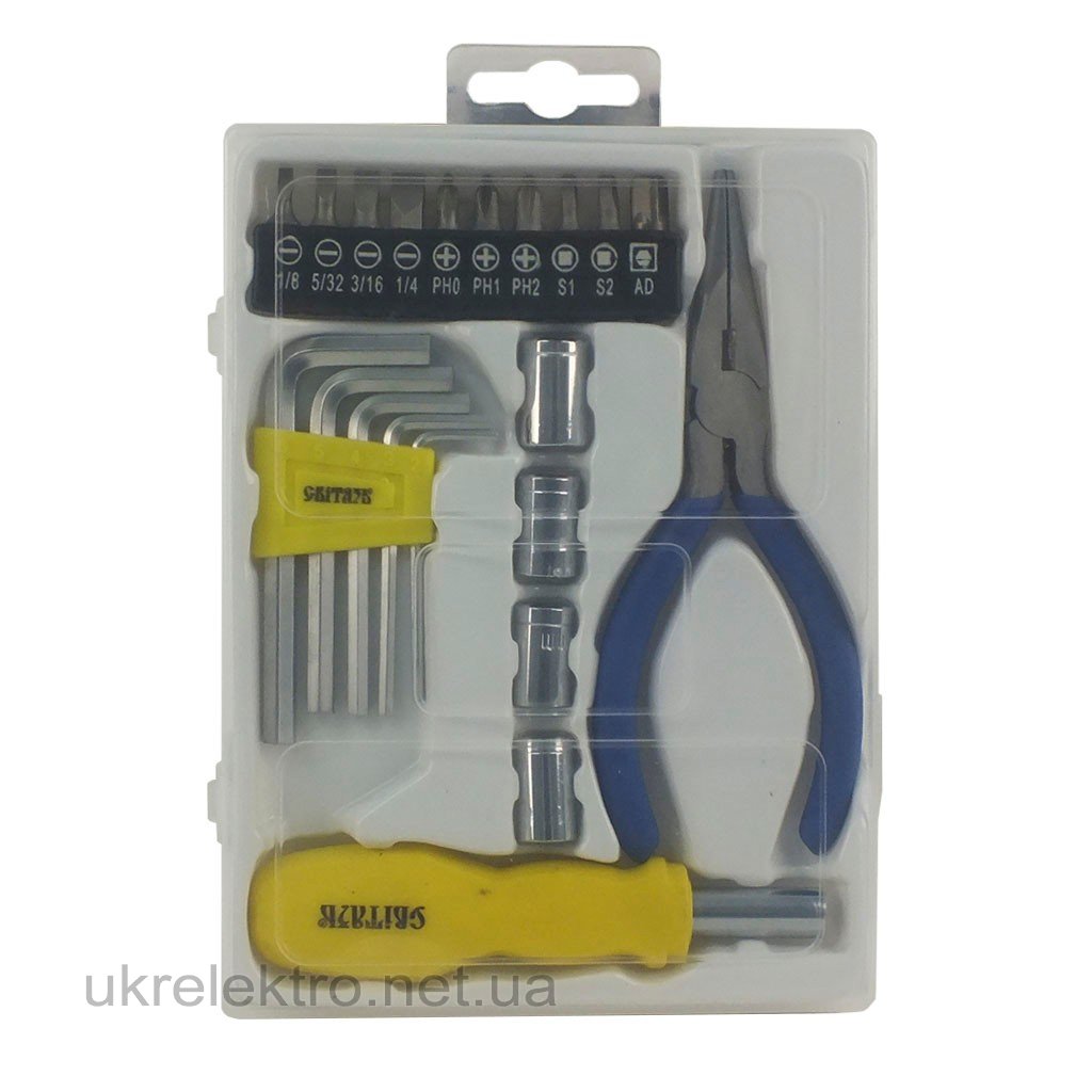 Опис Набір ручних інструментів 40009 Світязь 22 шт Набір інструментів 40009 Світязь - якісний, універсальний набір для професійного або побутового використання. Набір використовується під час ремонтних або зварювальних робіт. Поставляється в зручному кейсі і складається з 22 предметів. Інструменти виконані з хром-ванадієвої сталі високої якості.