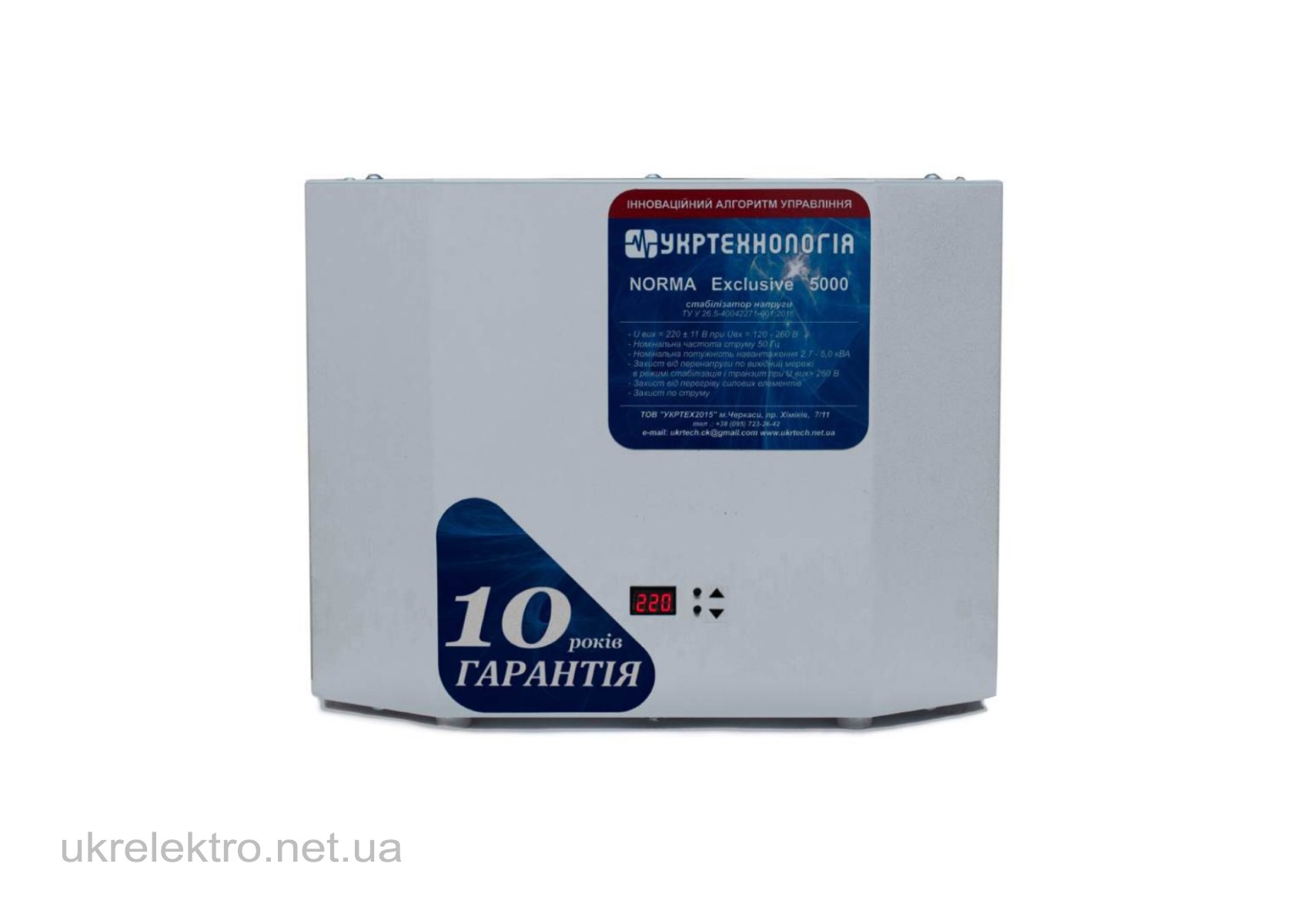 Точність стабілізації ± 5%, Число ступенів автоматичного регулювання — 12 ст., Граничний діапазон вхідної напруги: 60-285 V., Потужність 5 кВА.,