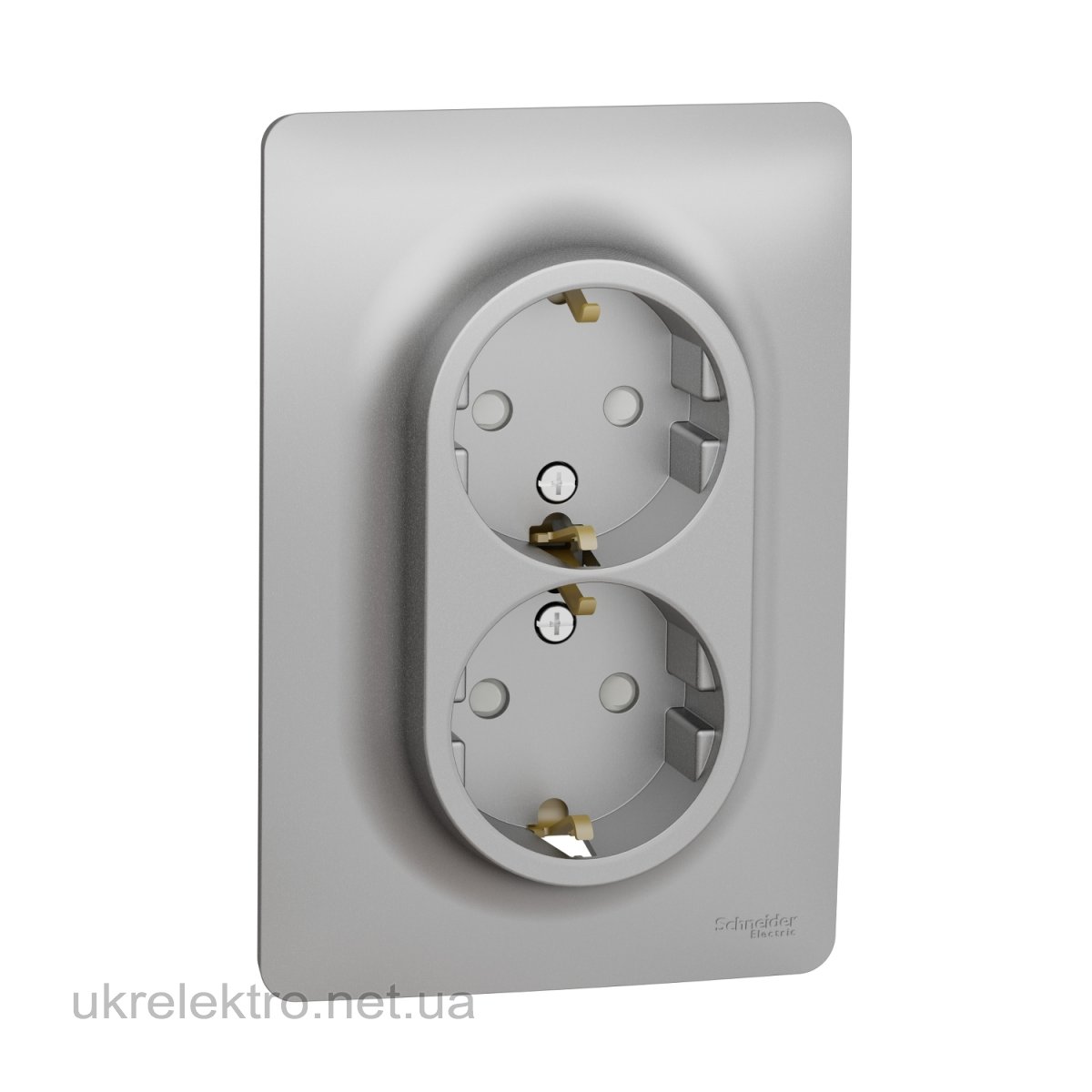 Розетка двойная с з / к, со шторками, винтовыми зажимами, алюминий