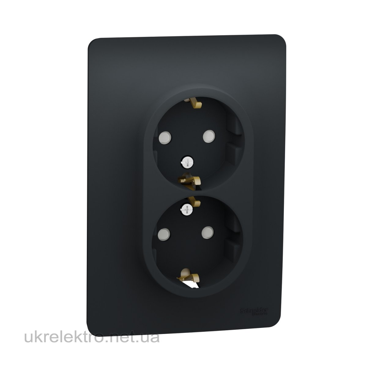 Розетка двойная с з / к, со шторками, винтовыми зажимами, антрацит