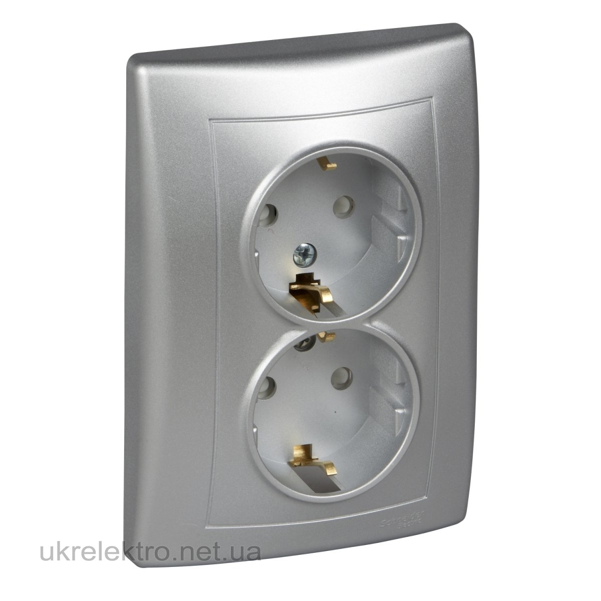 ПОДВІЙНА РОЗЕТКА З ЗАЗЕМЛЕННЯМ ТА ЗІ ШТОРКАМИ SEDNA АЛЮМІНІЙ
