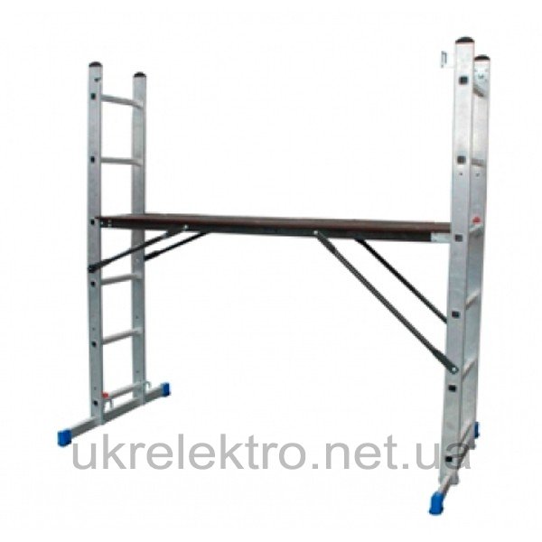 Опис Forte AOB4-206 Робоча площадка Особливості : Три варіанти використання: робоча площадка, двостороння драбина, приставні сходи Наконечники на ніжки (п'ятки) зроблені з пластика і гуми, що запобігають ковзанню і виключають дряпання поверхні Довгий горизонтальний стабілізатор дає високу стійкість при використанні Дерев'яна антиковзаюча поверхню платформи Простота в експлуатації