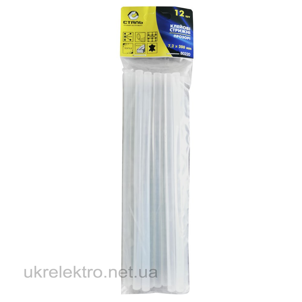 Клейові стрижні 12 шт прозорі 7.2х200 мм Сталь 80220