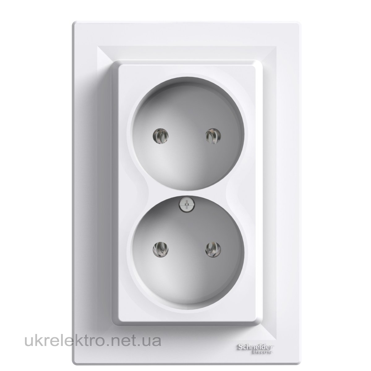 РОЗЕТКА ПОДВІЙНА БЕЗ ЗАЗЕМЛЕННЯ БІЛА ASFORA