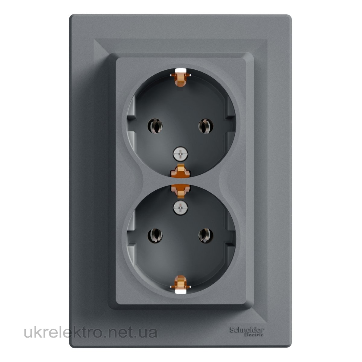РОЗЕТКА ПОДВІЙНА З ЗАЗЕМЛЕННЯМ СТАЛЬ ASFORA