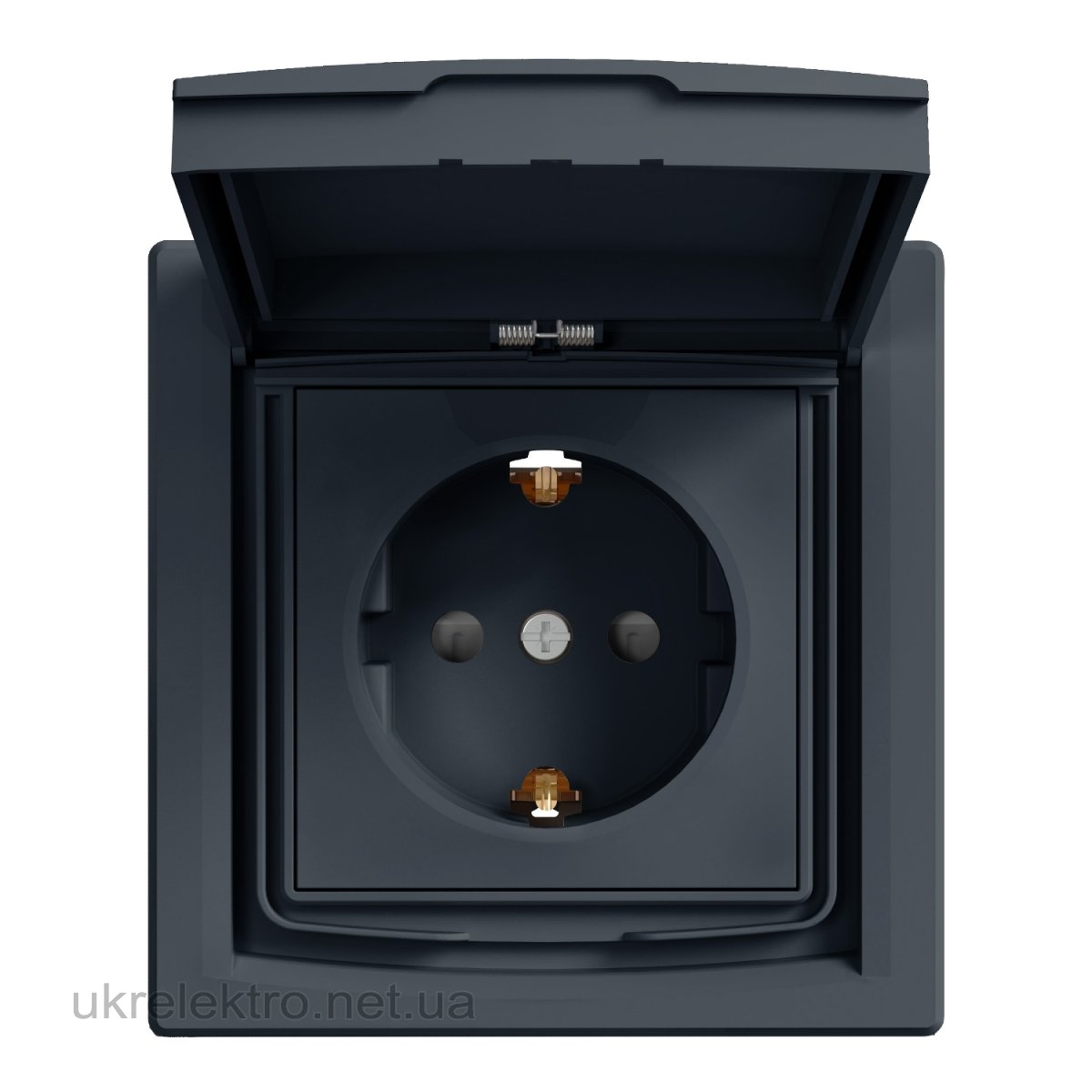 РОЗЕТКА IP44 З КРИШКОЮ, З ЗАЗЕМЛЕННЯМ, З ЗАХИСНИМИ ШТОРКАМИ, АНТРАЦИТ ASFORA