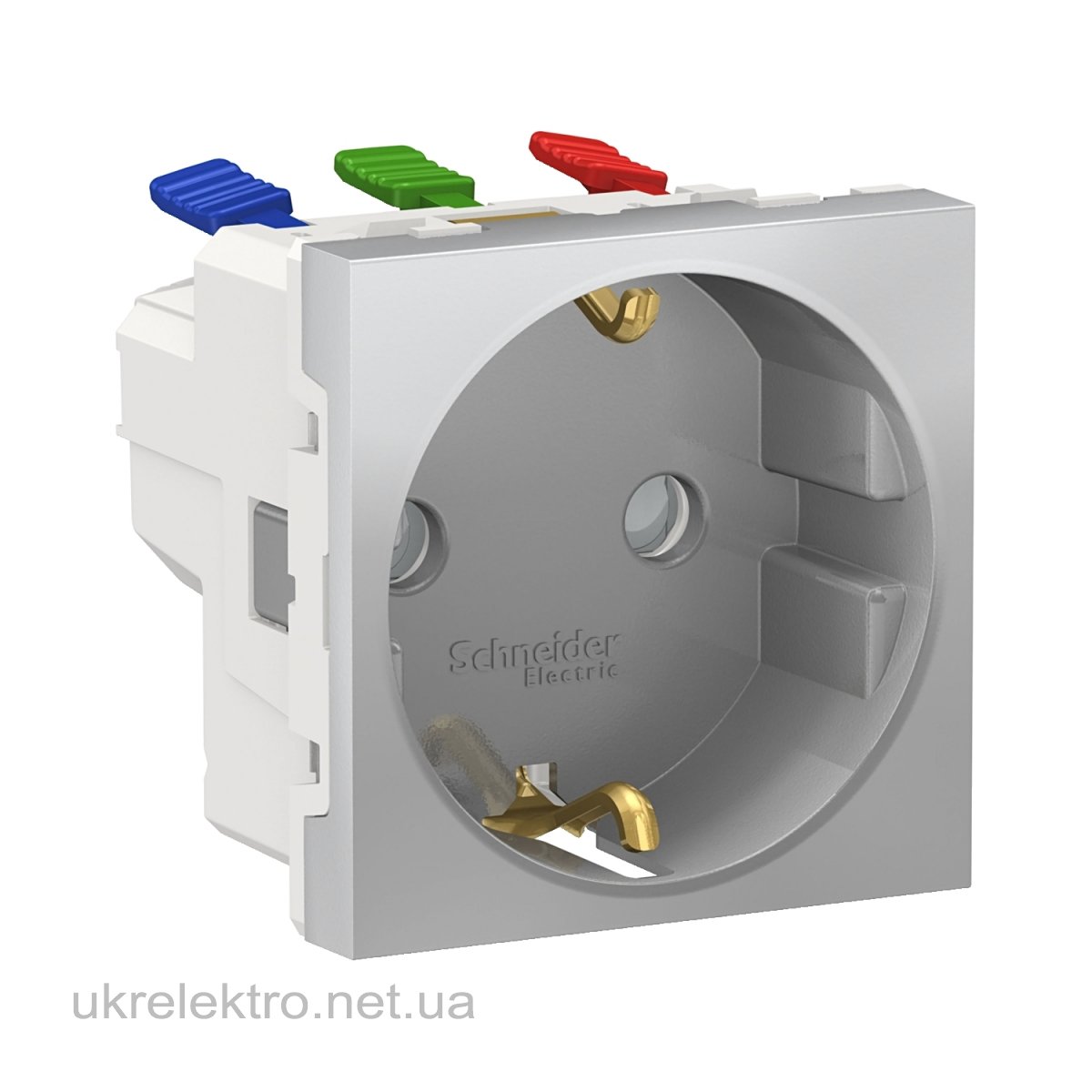 Розетка з з/к, зі шторками, 16А. самозажимні клеми, алюміній