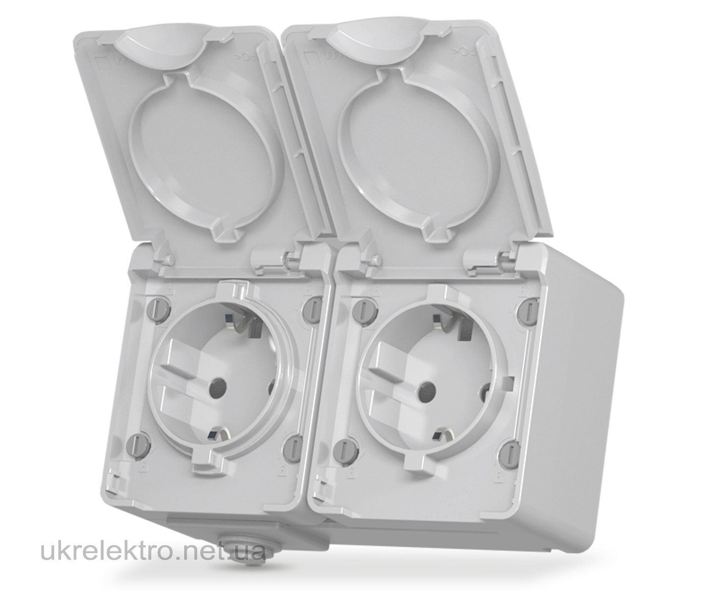 VIDEX BINERA IP65 Розетка зовнішня подвійна із заземленням сіра