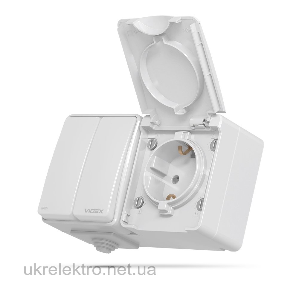 VIDEX BINERA IP65 Розетка зовнішня одинарна із заземленням та вимикачем двоклавішним сіра