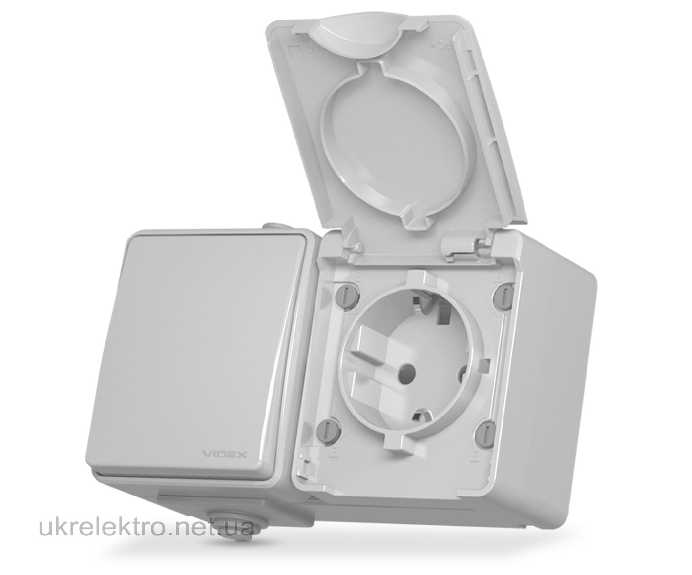 VIDEX BINERA IP65 Розетка зовнішня одинарна із заземленням та вимикачем одноклавішним сіра