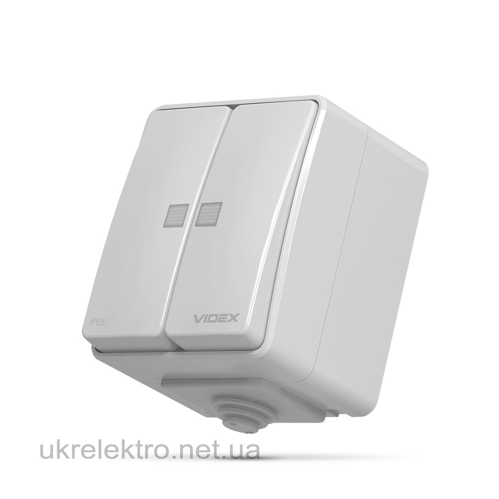 VIDEX BINERA IP65 Вимикач зовнішній двохклавішний з підсвіткою сірий