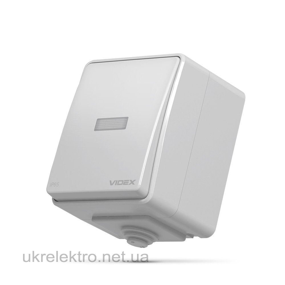 VIDEX BINERA IP65 Вимикач зовнішній одноклавішний із підсвіткою сірий