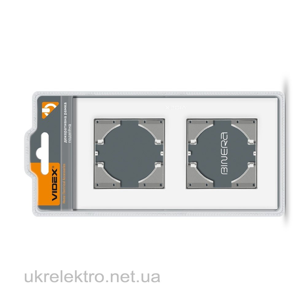 VIDEX BINERA Рамка біле скло на 2 місця горизонтальна
