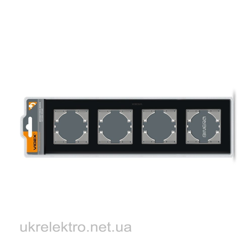 VIDEX BINERA Рамка чорне скло на 4 місця горизонтальна