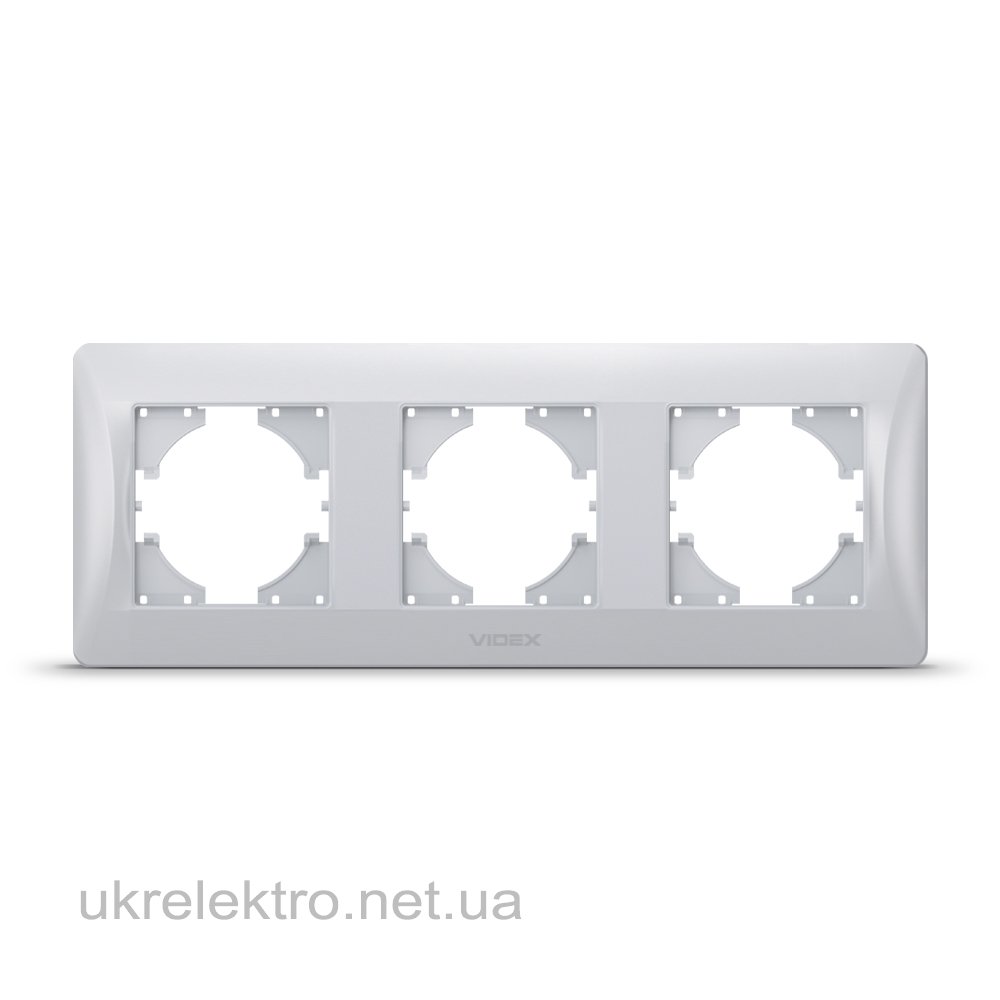 VIDEX BINERA Рамка срібний шовк на 3 місця горизонтальна
