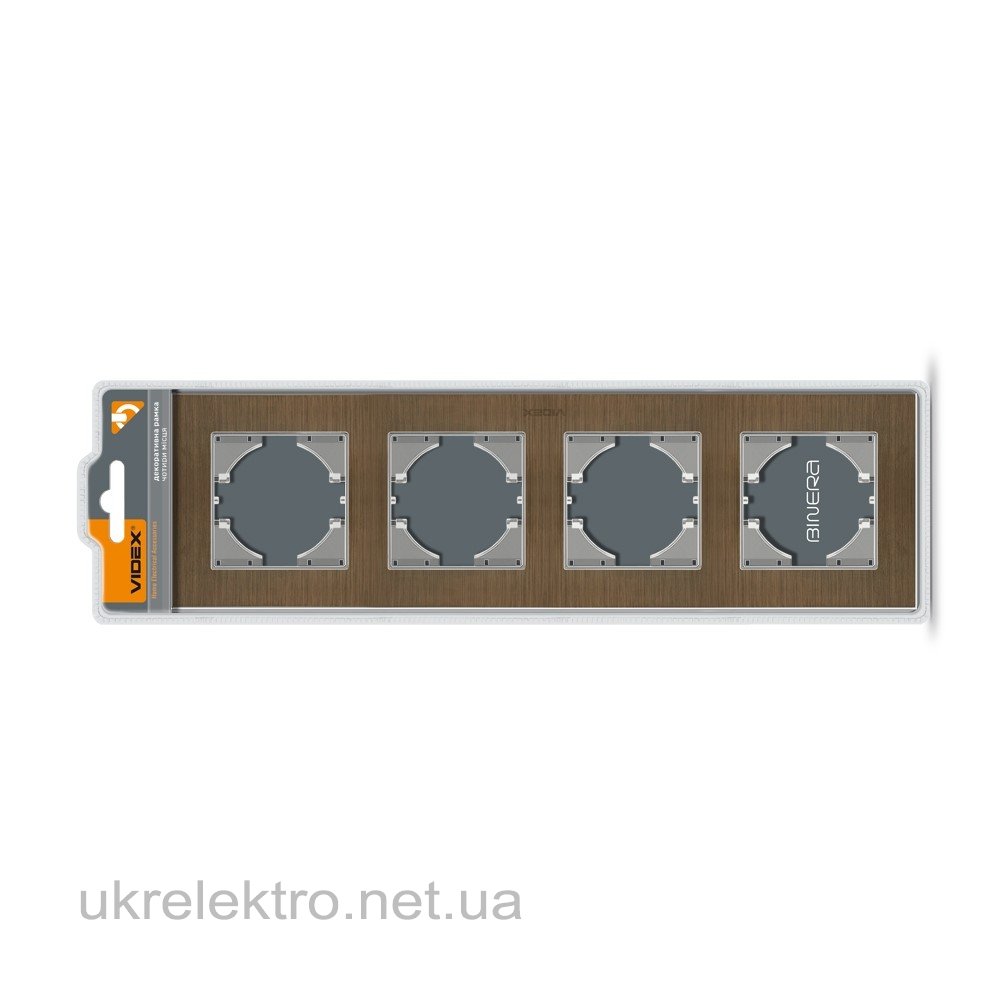 VIDEX BINERA Рамка шоколадний алюміній на 4 місця горизонтальна