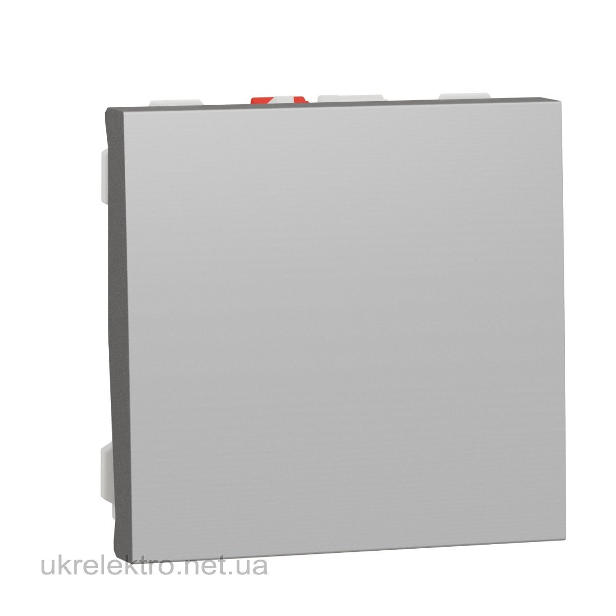 Вимикач 1-клавішний кнопковий схема 1, 10А, 2 модулі алюміній
