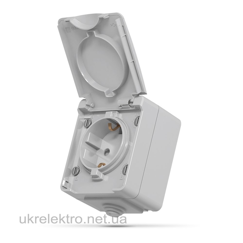 VIDEX BINERA IP65 Розетка внешняя одинарная с заземлением серая