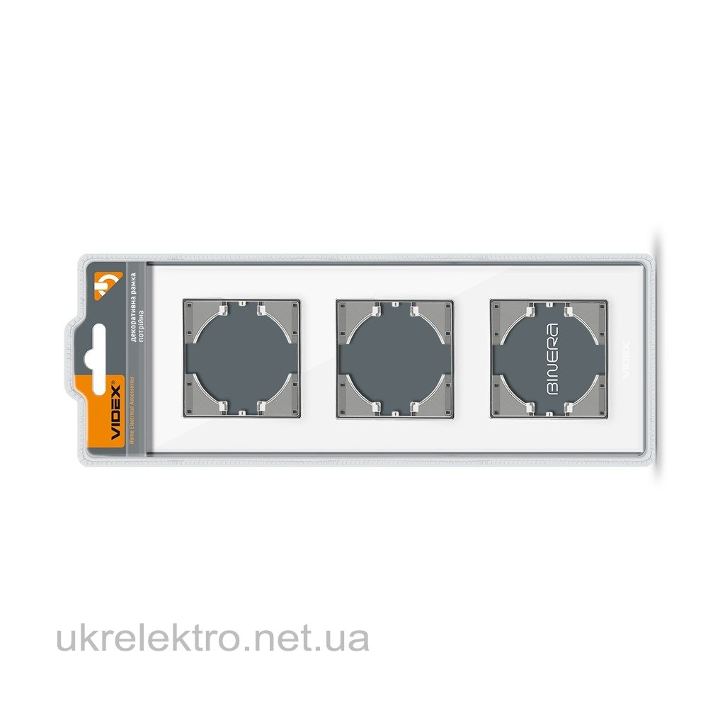 VIDEX BINERA Рамка белое стекло на 3 места горизонтальная