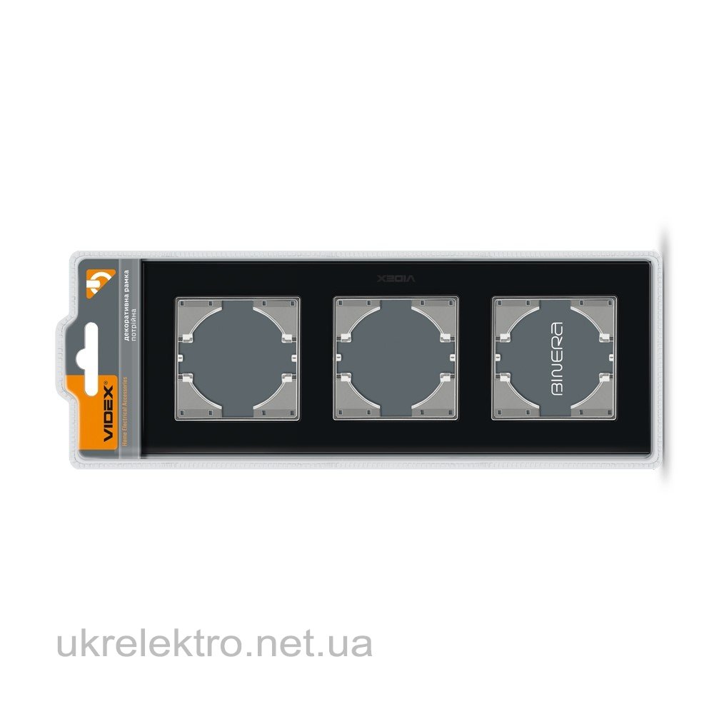 VIDEX BINERA Рамка черное стекло на 3 места горизонтальная