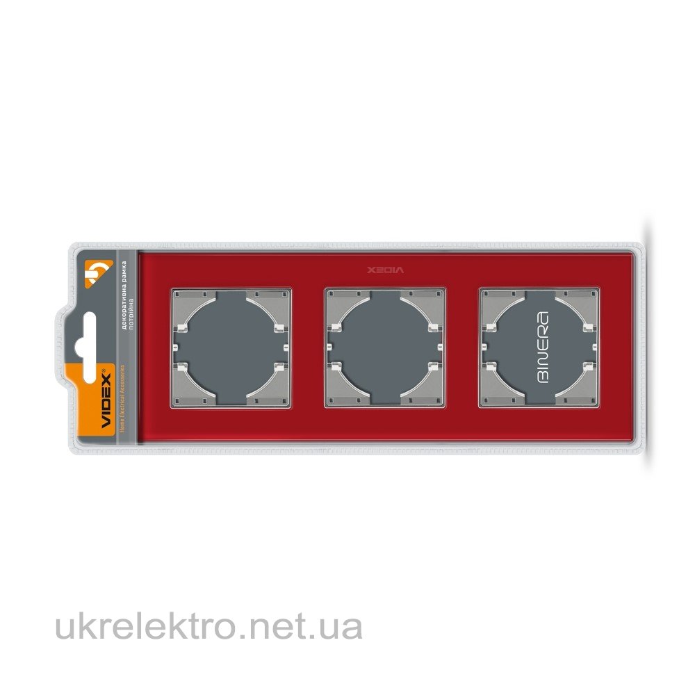 VIDEX BINERA Рамка красное стекло на 3 места горизонтальная