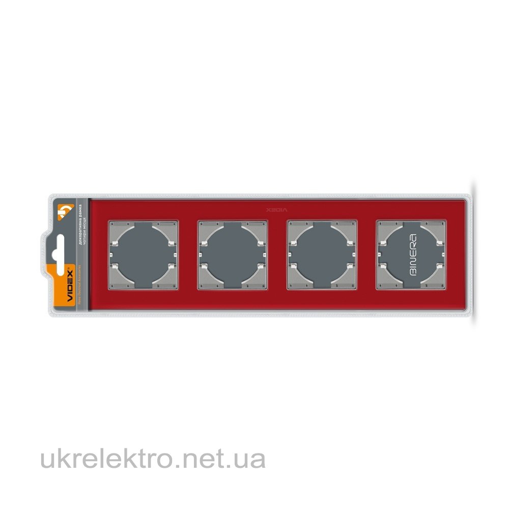 VIDEX BINERA Рамка красное стекло на 4 места горизонтальная