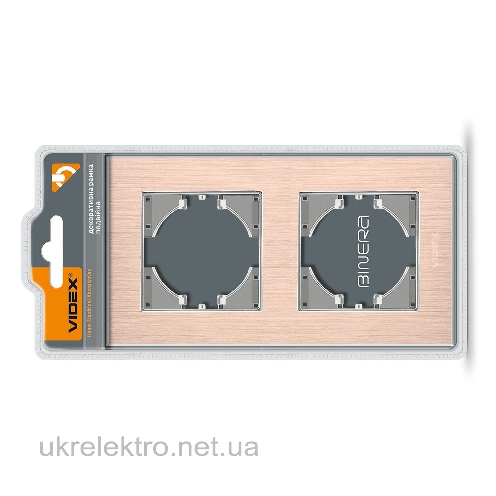 VIDEX BINERA Рамка медный алюминий на 2 места горизонтальная