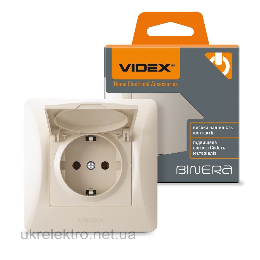 VIDEX BINERA Розетка одинарная с заземлением и крышкой кремовая