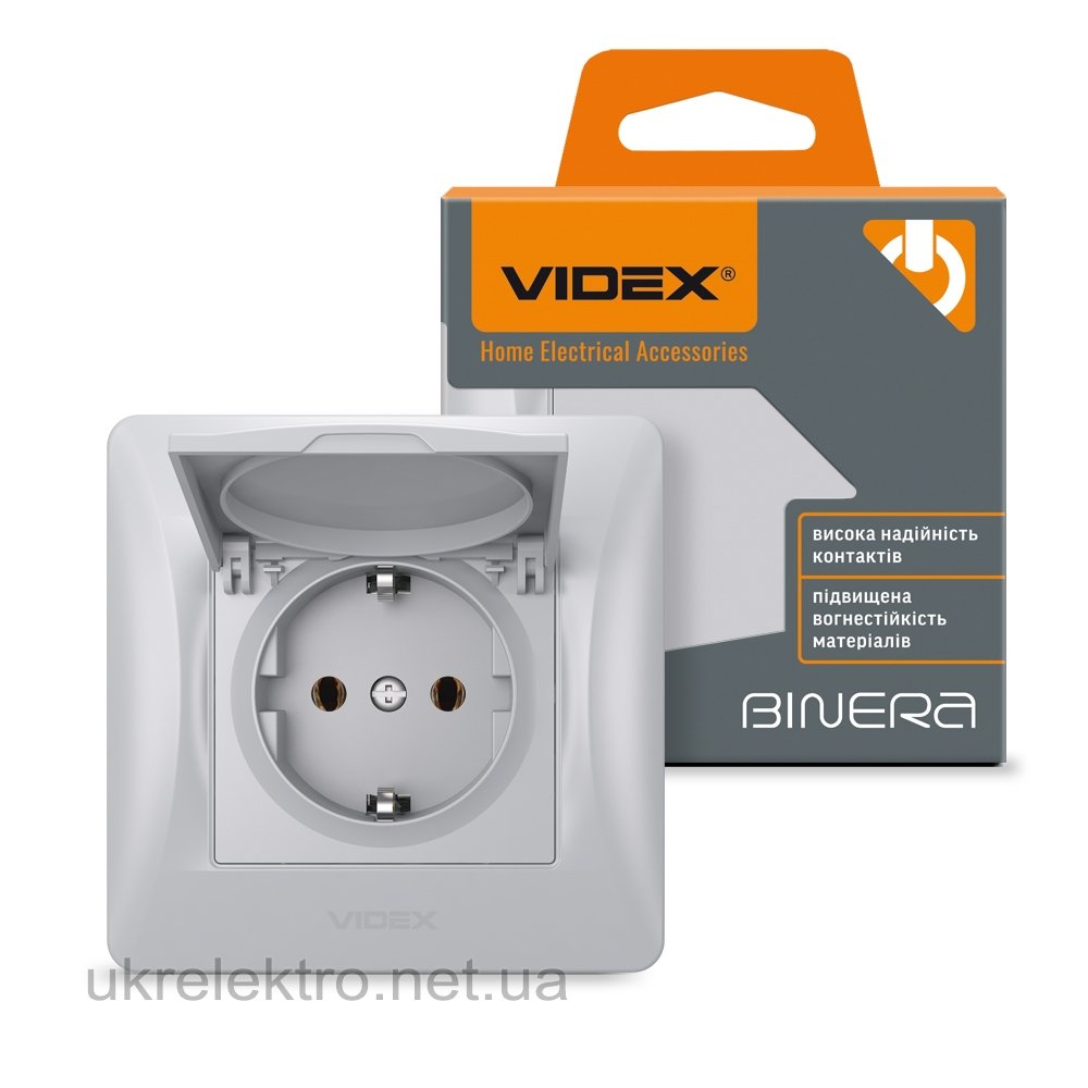 VIDEX BINERA Розетка одинарная с заземлением и крышкой серебряный шелк
