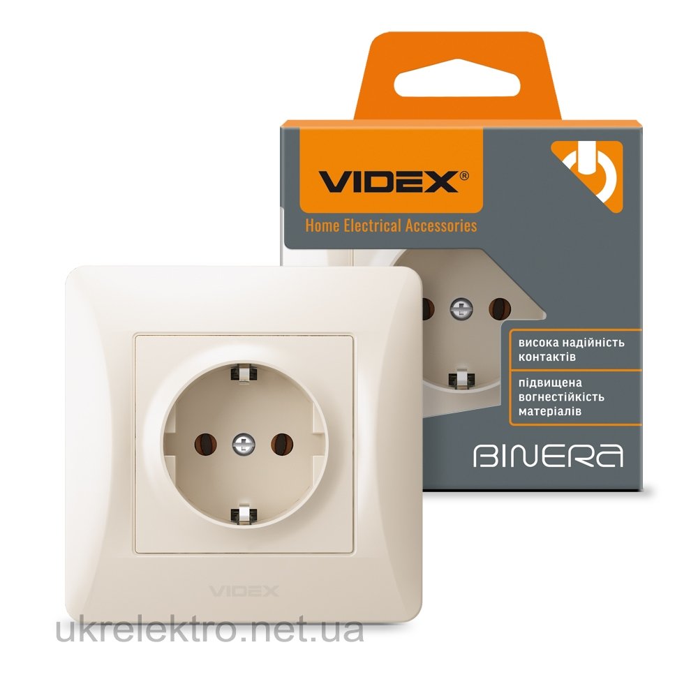 VIDEX BINERA Розетка одинарная с заземлением кремовая